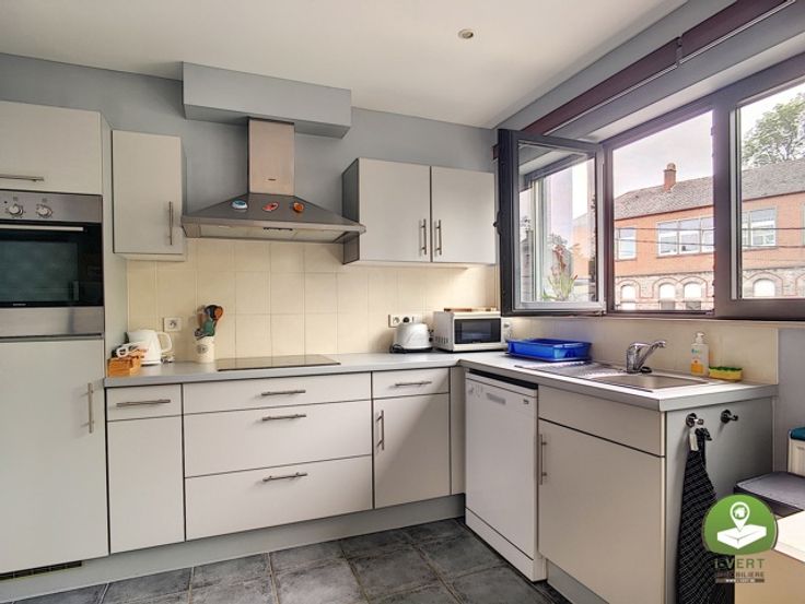 Op de 2e verdieping van de Napa residentie, dit aantrekkelijke duplex appartement bestaat uit: een hal met toilet, een woonkamer en klein balkon, een volledig uitgeruste keuken, een slaapkamer met eigen badkamer en bijkeuken, en een kelder. Individuele stadsverwarmingsketel op gas, PEB ( C) en lift. Voorgestelde maandelijkse kosten van € 80 (onderhoud boiler, lift, onderhoud en elektriciteit voor gemeenschappelijke ruimtes, beheerkosten, brandverzekering, etc.) Beschikbaar per 1 september. Huurgarantie van 2 maanden op Korfine rekening. Informatie bij het agentschap en bezichtigingen op afspraak.