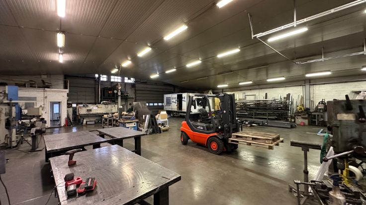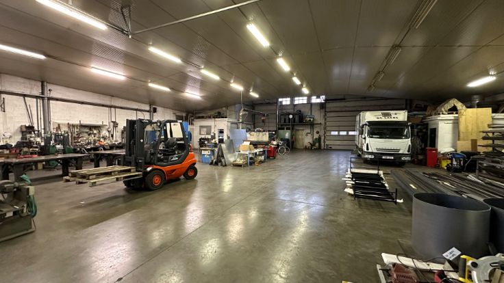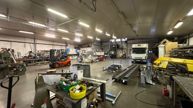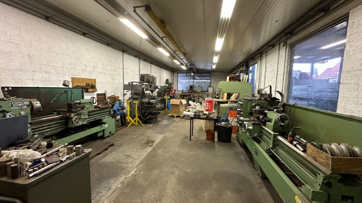 Het gebouw is opgetrokken uit een staalconstructie en baksteenmetselwerk met een zadeldak. Ook zijn er twee sectionale poorten en een overdekte binnenkoer aanwezig waar extra materiaal kan gestockeerd worden. Ook is er een mogelijkheid om de naastliggende woning met tuin bij te kopen.Onder de voorhanden voorzieningen vallen onder andere: stromend water, elektrische verwarming in het bureel, stookoliebrander in het atelier, drijfkracht en hoogspanning. Dit is dus de ideale ruimte voor een beginnende of gevestigde metaalbewerker.