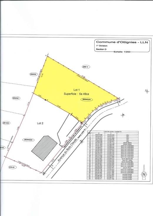 Sorry er is geen nederlandse vertaling beschikbaar. Sur les hauteurs d'Ottignies, ds un super quartier au calme, au vert, opportunité unique cette parcelle de terrain qui pourrait accueillir votre villa 4 façades moyennant permis d'urbanisme, proche de toutes les facilités, des axes importants, du centre d'Ottignies, de la GARE, des écoles réputées, à deux pas de Louvain-la-Neuve, localisation top top top ! La commune d'Ottignies a marqué son accord pour la division de la parcelle de terrain. La parcelle de 6a49ca avec une largeur de façade de +/- 18,55Mètres attend votre plus beau projet.Opportunité unique sur les hauteurs d'Ottignies, au calme, au vert et à deux pas de tout ! Vous vous lancez ? Frais de bornage, de mesurage (1.270,50€ TVAC) et de raccordements à charge de l'acquéreur. La 1ère photo est celle d'un projet sur ce terrain.