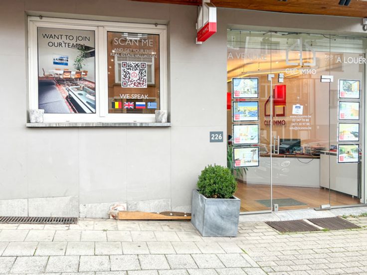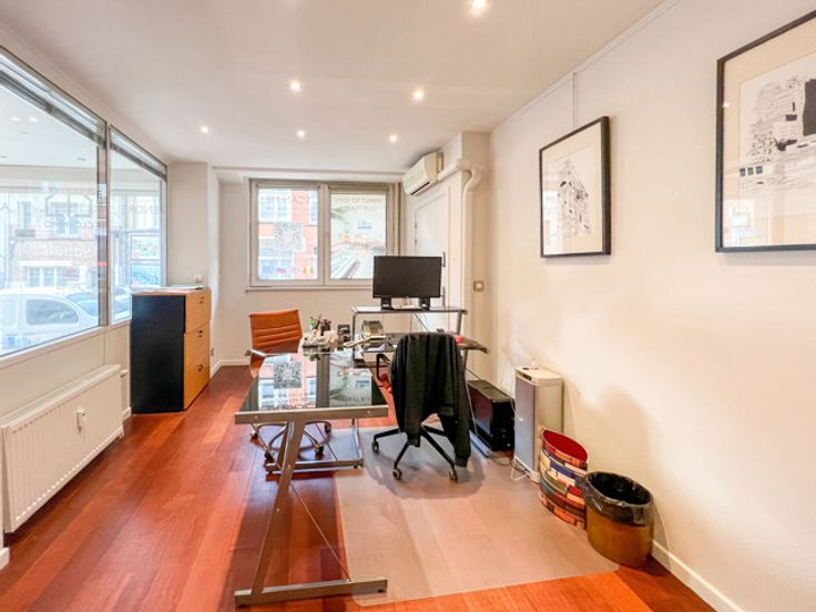 100 sqm commercial ground floor for offices and/or retail (no Horeca), 2 steps from De Fré Shopping mall and public transports, and in a walking distance of many green areas. Currently operated as a real estate agency, it offers on the street-side one public area with display windows and one manager’s office with separate entrance, at the backside 3 rooms (easily convertible into one open space), kitchen and bathroom.