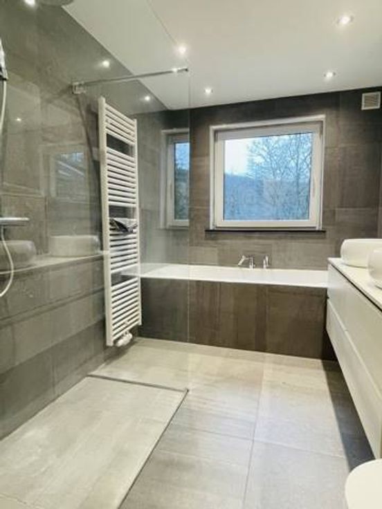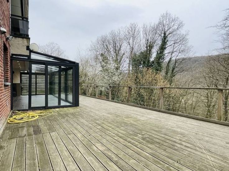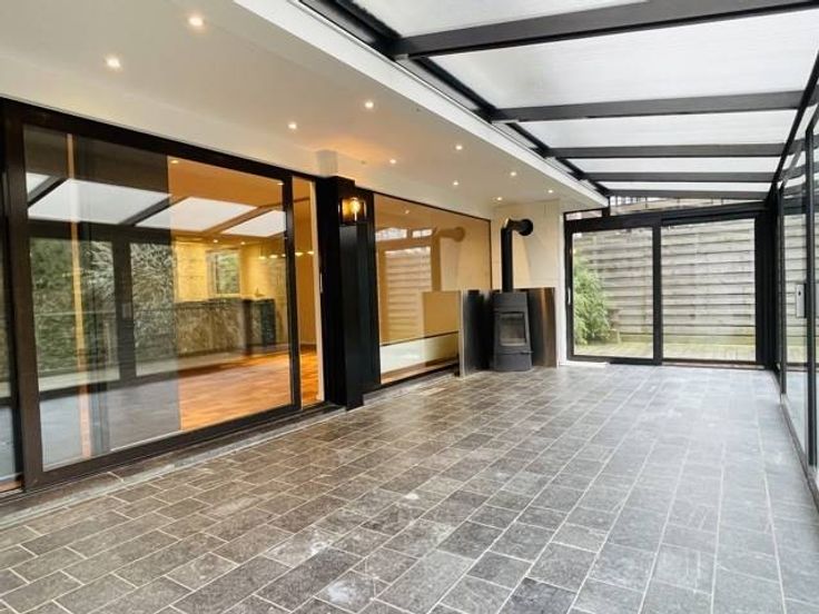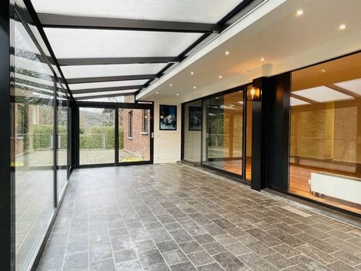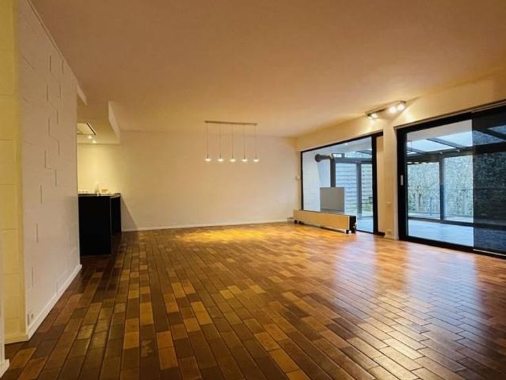 Sorry er is geen nederlandse vertaling beschikbaar. !!! OPTION !!! Proche des grands axes, un bel appartement d’approximativement 140m2, lumineux et situé en rez-de-jardin, donnant sur un espace boisé, comportant véranda, terrasse, box garage et emplacement de voiture. Il est composé comme suit : hall d’entrée, wc indépendant, spacieux living (57 m2) donnant sur une véranda et une grande terrasse et intégrant une cuisine équipée (9.50m2). Espace de rangement (5.5m2), salle de bains (7m2), hall de nuit avec dressing, trois chambres (15, 13 et 7.7 m2), une cave. Au rez-de-chaussée : un garage avec espace buanderie, un emplacement de parking. Quotités : 320/1000ès. PEB n° 20231220009904 - E 376 kWh/m2.an - 58962 kWh/an