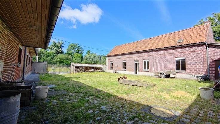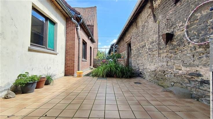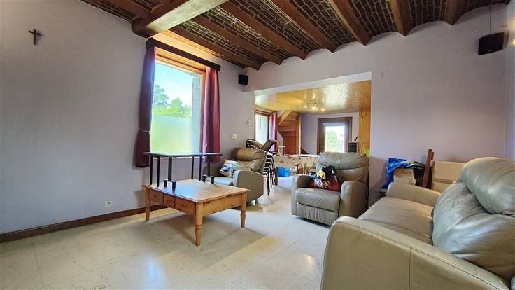 Sorry er is geen nederlandse vertaling beschikbaar. Authentique ferme en U partiellement rénovée située dans une impasse, pouvant allier des activités familiales et professionnelles. Celle-ci se situe dans un cadre agréable, à proximité immédiate des grands axes, des commodités et du centre-ville. Très lumineux, le premier corps de logis comprend au rez-de-chaussée un vaste séjour/salle à manger, un espace cuisine, trois chambres, ainsi qu'une buanderie. À l'étage, un vaste grenier partiellement aménagé se prête à toutes sortes de projets familiaux grâce aux deux chambres déjà aménagées. Une immense grange et ses annexes en brique viennent en complément pour vous offrir tous les volumes nécessaires à vos futures activités comm .