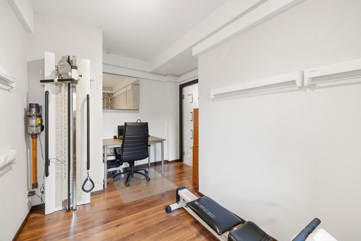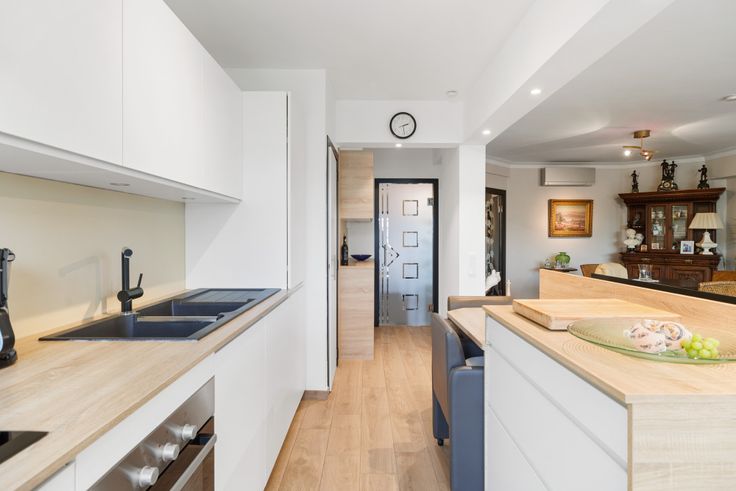 Binnenkomend via de gepantserde en brandveilige deur komen we terecht in de centrale inkomhal van het appartement. Afgescheiden met een glazen deur betreden we de leefruimte met geïnstalleerde keuken. Een absolute troef zijn de grote raampartijen doorheen deze leefruimte.