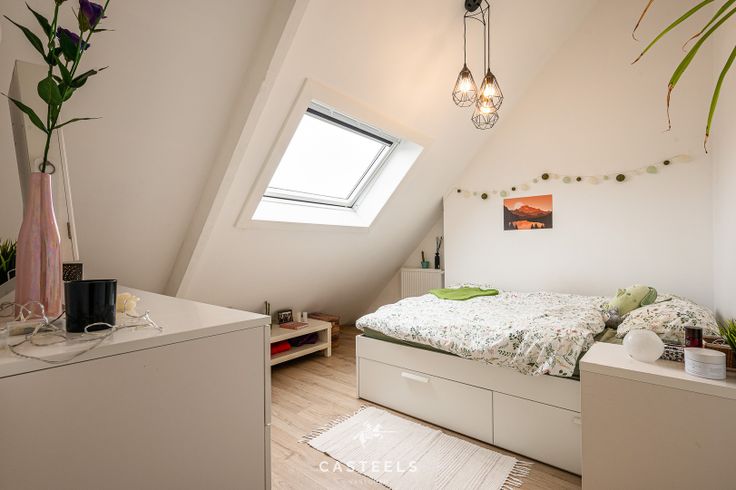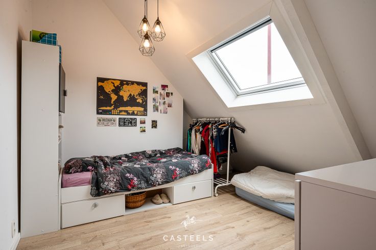 De woning biedt 4 ruime slaapkamers, verdeeld over twee verdiepingen. Daarnaast is de zolder recent volledig gerenoveerd en omgetoverd tot een vierde slaapkamer. Dit maakt het huis bijzonder geschikt voor jonge gezinnen of mensen die nood hebben aan een extra hobbyruimte, thuiskantoor of logeerkamer.