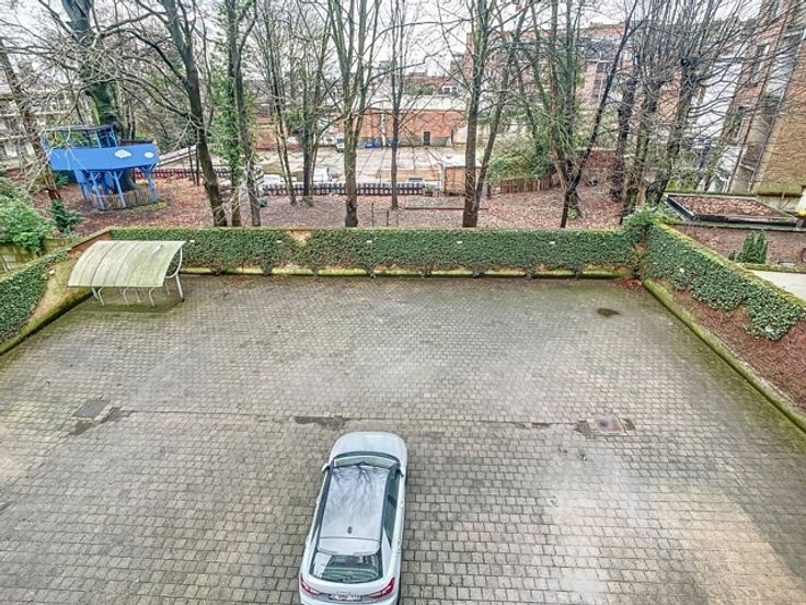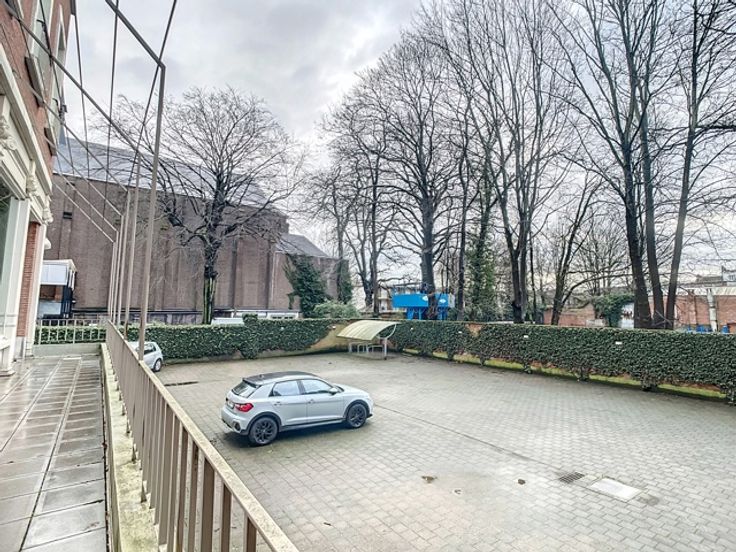 Achter het gebouw bevindt zich ruime parkeergelegenheid, bestaande uit 25 parkeerplaatsen. Het terrein is volledig afgesloten door een smeedijzeren inrijpoort en natuurstenen pilaren.