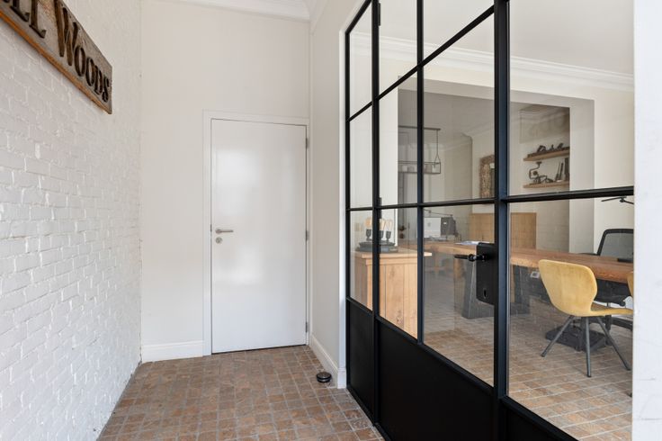 Bij binnenkomst stapt u in een ruime handelsruimte of kantoorruimte, perfect voor het ontvangen van klanten of het inrichten van een productieve werkplek. De ruimte straalt charme en professionaliteit uit, ideaal voor een representatieve uitstraling.