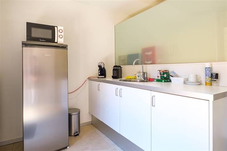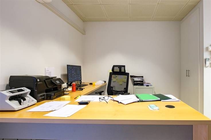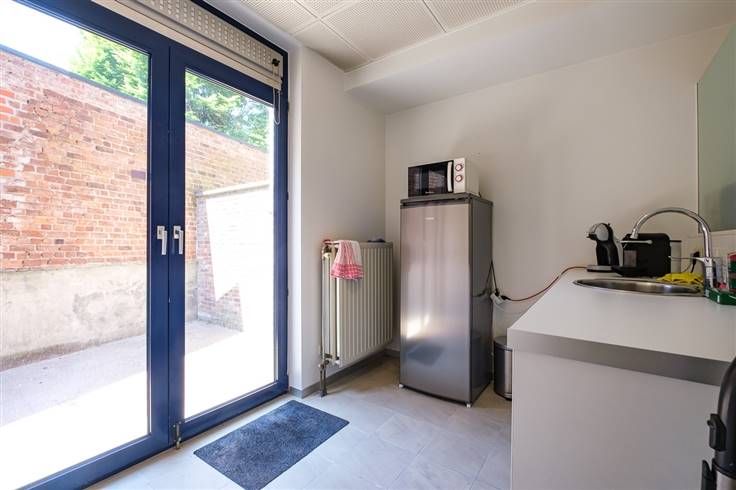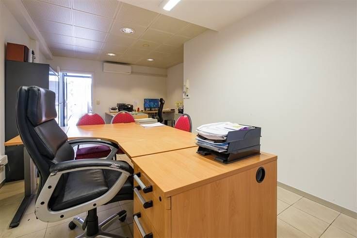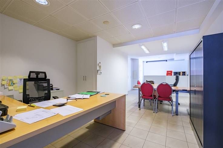 Naast de eigenlijke kantoorruimte omvat het pand nog een opbergruimte, een apart toilet, een ruime koer en een grote kelderberging.
