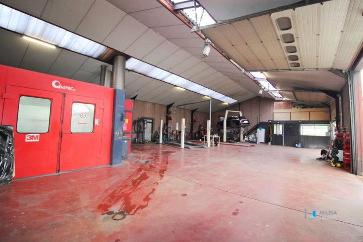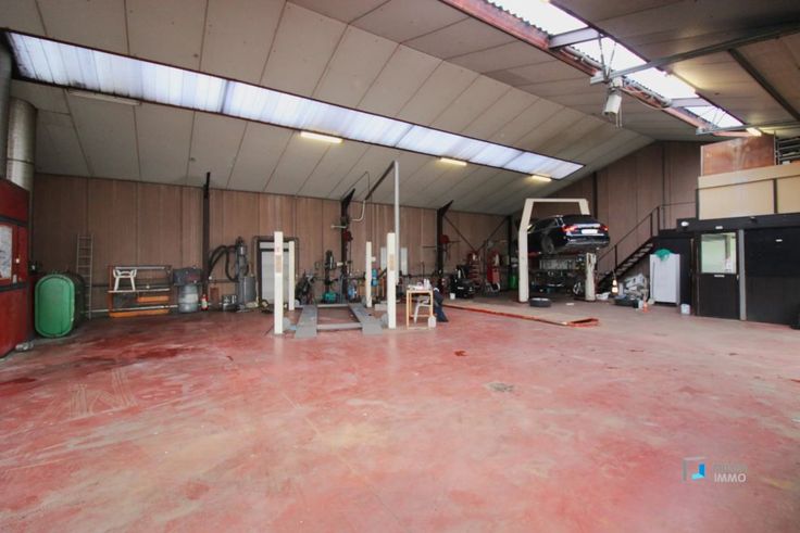 Coté technique pour l'atelier: chauffage au mazout, 2 ponts élévateurs, un bureau, une remise à l'étage, double porte sectionnelle électrique.