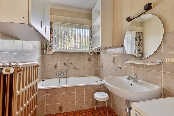 Woning type alles gelijkvloers op 8are vlakbij historische centrum van scherpenheuvel, maar ook op fietsafstand van station van Zichem. Zalig rustig en heel zonnig gelegen op einde van straat met weinig doorgaand verkeer . Met een aantrekkelijke voor- en zijtuin, die de woning in de kijker zetten, alsook achtertuin met veel privacy.Bij de bouw van de woning werd aandacht besteed aan de oriëntatie: ochtendzon op de slaapkamers, ruime zuidgerichte leefruimte baadt de ganse dag in het zonlicht, avondzon in de keuken. De woning omvat: inkom- en nachthal, keuken met ruimte voor een ontbijthoek, gastentoilet, leefruimte, bergruimte met CV-ketel, badkamer met ligbad 3 slaapkamers (12, 11 en 9 m²), garage (mogelijkheid tot 4e slaapkamer, bureel- of hobbyruimte of zelfs bijkomende leefruimte), zolder (met geïsoleerde vloer), kruipkelder. CV op stookolie (recentere ketel). Momenteel heeft de leefruimte geen uitzicht op de achtertuin (wel op de bredere zijtuin), maar dit kan makkelijk gerealiseerd worden door de muur tussen slaapkamer 3 en de leefruimte (waar nu vitrinekast en schommel staat) weg te halen. Een derde slaapkamer kan eventueel komen in de inpandige garage.Of je maakt een grote woonkeuken van de garage die in annex van de leefruimte ligt en via tuindeur en raam uitgeeft op de achtertuin. Renovatieverplichting. Meer foto's en documentatie: www.lissens.be
