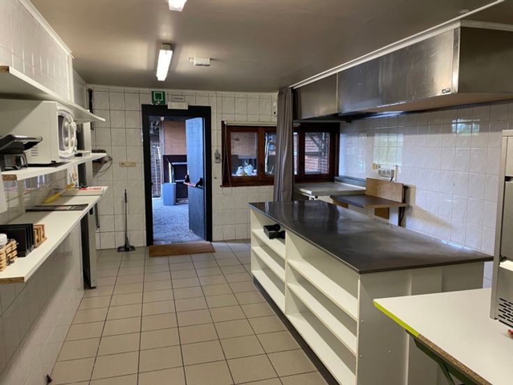 INDELING: Café, toiletten, sas, kelder, afwasruimte, opslagplaats, keuken, buitenopslag.