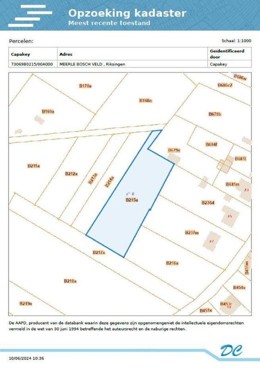 STAD TONGEREN, vierde afdeling, deelgemeente RIKSINGEN Een perceel landbouwgrond gelegen Meerle Bosch Veld, gekadastreerd volgens recent kadastraal uittreksel sectie B, nummer 0215AP0000, met een oppervlakte van negenentwintig are tweeënnegentig centiare (29 a 92 ca). Niet-geïndexeerd kadastraal inkomen: negentien euro (€ 19,00). Verpacht +18 jaar Toegankelijk via straatzijde "Keiberg" Vraagprijs: €12.000 P score: A