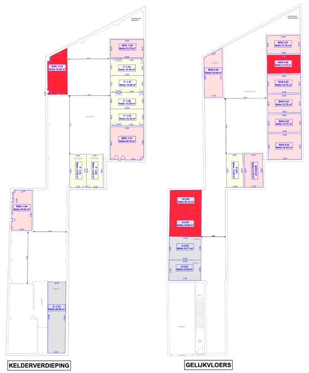 Op de gelijkvloerse verdieping bieden we nog 2 boxen van telkens (3,5 m breedte/4,85m diepte) aan. Deze zijn naast elkaar gelegen en ideaal voor een kleinere wagen of stockage-ruimte. Op deze verdieping is eveneens nog 1 ruimere garage die zeer toegankelijk is met een opp: (2.75m breedte/5m diepte) . Garagebox 0.04 is momenteel verhuurd op lange termijn à stabiele huurder - 4% rendement. (Netto rendement = kleine investering)