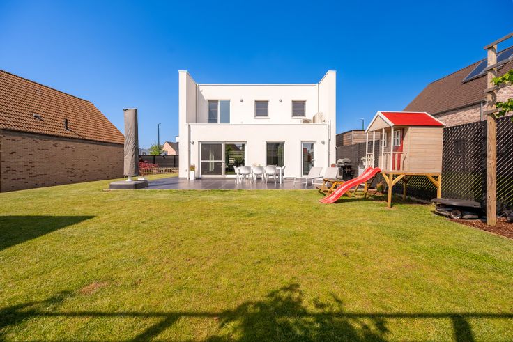 Deze recente, energiezuinige woning biedt alles wat u nodig heeft en meer, gelegen in een rustige en kindvriendelijke woonwijk. Stap binnen in de royale woonkamer die naadloos overgaat in een moderne open keuken. De grote raampartijen zorgen voor een overvloed aan natuurlijk licht en bieden een prachtig uitzicht op de tuin, waar u kunt genieten van uw ochtendkoffie of een gezellige barbecue met vrienden en familie. Grenzend aan de keuken vindt u een handige berging en wasplaats. Alles binnen handbereik. Op de bovenverdieping bevinden zich drie slaapkamers. Hier vindt iedereen zijn eigen plekje om tot rust te komen en te ontspannen. De stijlvolle badkamer is uitgerust met een inloopdouche, een bad en een dubbele wastafel. Op de bovenverdieping is er ook een apart toilet en een extra berging, ideaal voor het opbergen van seizoensspullen of andere benodigdheden. Deze woning is voorzien van zonnepanelen en airco, waardoor u het hele jaar door kunt genieten van een aangenaam binnenklimaat en lagere energiekosten. Er is een ruime oprit aanwezig met plek voor maar liefst drie wagens. In de tuin is elektriciteit voorzien, waardoor u eenvoudig uw elektrische apparatuur kunt aansluiten voor tuinfeestjes.  Deze woning is perfect als je graag geniet van wat comfort en een energiezuinige levensstijl.  Kom deze droomwoning bezichtigen en neem vandaag nog contact met ons op voor een afspraak. Tot binnenkort! Renovatieplicht: nee