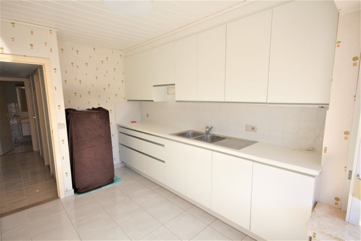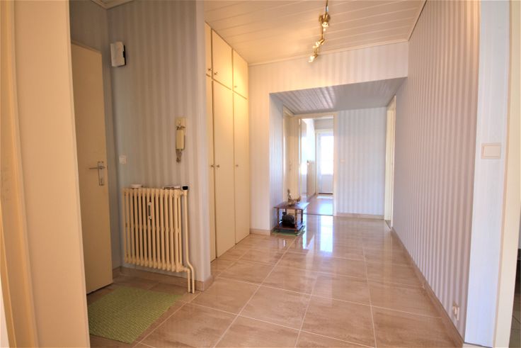 Het appartement heeft een oppervlakte van 98 m², is vrij bij akte. Met garage ter optie aan 195.000. Nieuwe keramische tegelvloeren in de hall, gang, badkamer, keuken, en toilet. Nieuw laminaat-parket in de living, slaapkamers en bureau. De plafonds van de meeste vertrekken zijn voorzien van nieuw laminaat. Buitenschrijnwerk in aluminium + dubbele beglazing, en elektrische rolluiken. Voorzien van parlofoon, stadswater, elektriciteit, internet, en van een collectieve verwarmings- en warmwaterdistributie (aardgasgenerator).