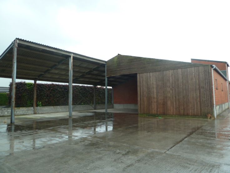 Achteraan is er een overdekte buitenopslag in het verlengde van het magazijn. Het volledige terrein is bovendien verhard.