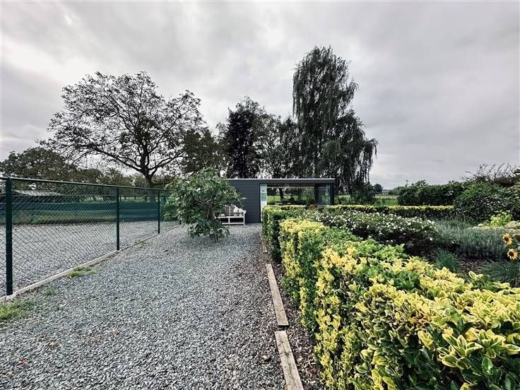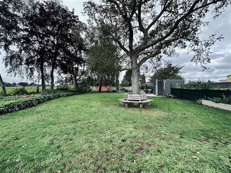 De achterliggende tuin is gelegen achter de woning en de loods. Een ruime zuid gerichte tuin met uitzicht op het groen.