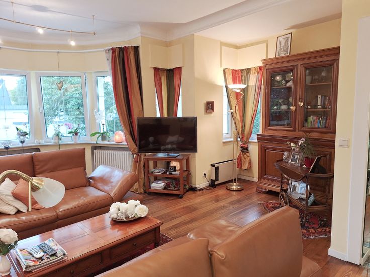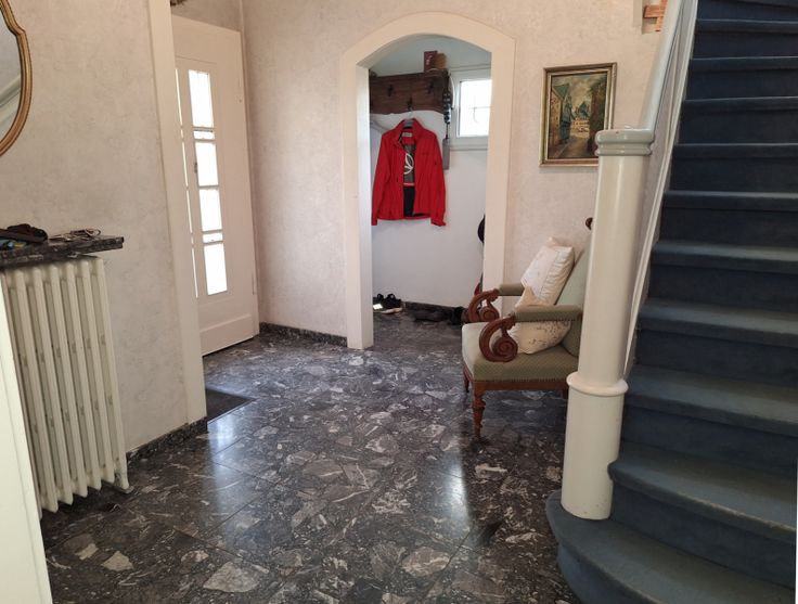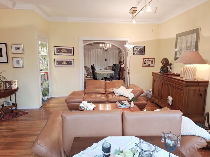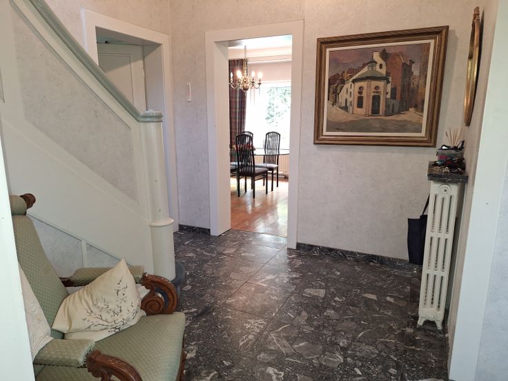 Beim Begehen dieser freistehenden Villa bemerken sie sofort den Charme des besonderen Wohnstyls, geprägt durch die architektonische Modernität der 30er Jahre. Die Eingangshalle im Hochparterre ist ausgestattet mit Marmorboden, Garderobenecke und separates WC. Die angenehme Höhe der lichtdurchzogenen Wohnräume, die Böden mit Holzdielen und Keramikplatten ausgestattet, eine Schiebetüre mit Glaseinsatz in der Mitte zur Trennung der Räume und die hintere Fensterfront zum Wintergarten, bieten den nötigen Wohnkomfort dieses Hauses. Die kleine modernisierungsbedürftige Küche kann mit wenig Aufwand vergrössert werden. Die 1.Etage verteilt 3 Schlafzimmer, jedes mit Zugang zum Balkon und das Bad mit Duschwanne u Toilette. Den ausbaufähigen Speicher erreicht man über einer Falttreppe zur 2.ET. Das Haus ist unterkellert und hat eine Einliegergarage. Direkt davor befindet sich der private Parkplatz für 3-4 Autos. Besondere Merkmale sind; der gute und gepflegte Zustand des Ganzen, ein schöner und liebevoll angelegter Garten und die verschiedenen Terrassen mit Sonnenausrichtung für jede Tageszeit. Die Immobilie in diskreter Stadtlage, ist über einen Privatweg der Hostert zu erreichen. Fussläufig in nur wenigen Minuten vom Stadtkern mit Einkaufsmöglichkeiten, Schulen, Bahnhof, Ärzte und Behörden. Detaillierte Informationen erhalten sie via info@immoge.com Lia Ploumen.