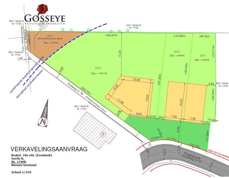 LOT 1 geschikt voor half-open bebouwing kent een oppervlakte van 4a 78ca.
