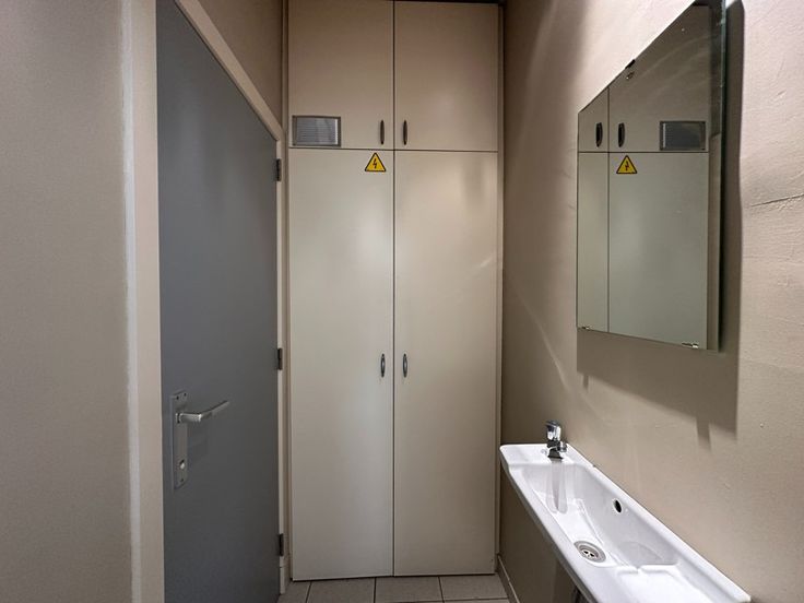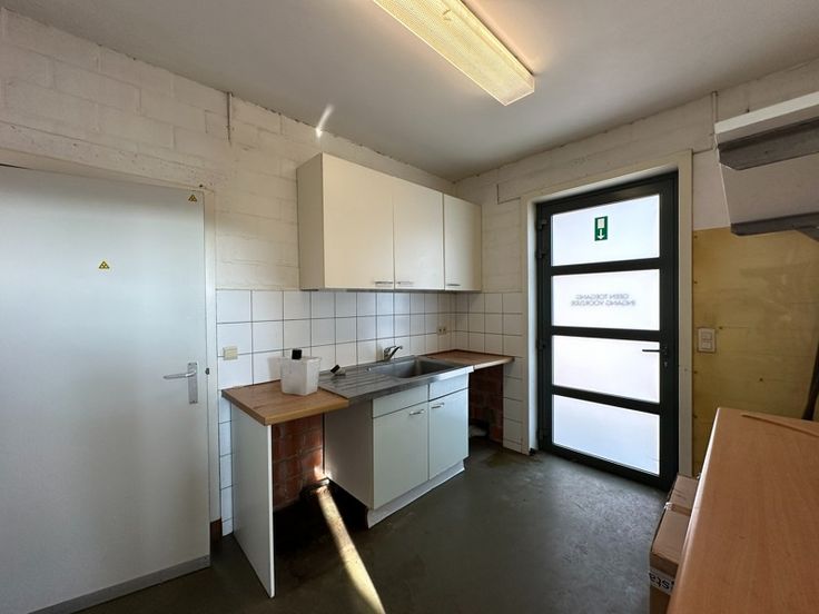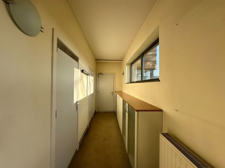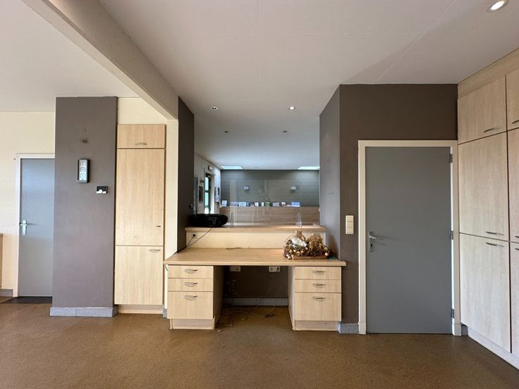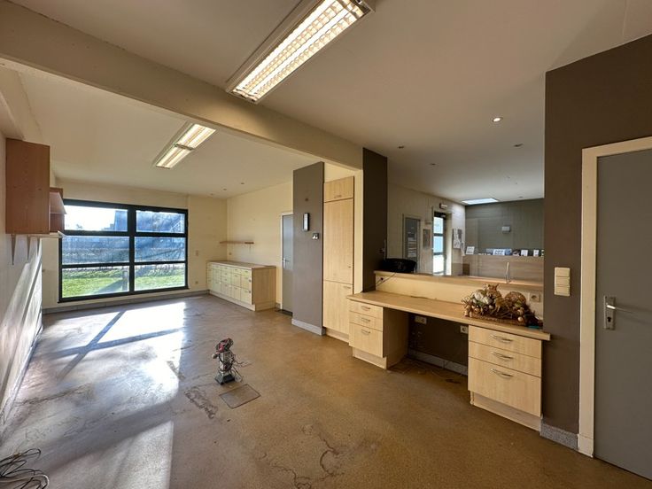 Ontvangstruimte met balie. Praktijk en verschillende stockageruimten. Apart toilet, badkamer met lavabo, douche en toilet, keuken.