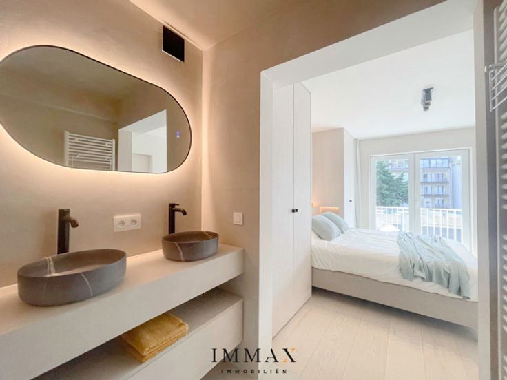 Uiterst smaakvol gerenoveerd 3-slaapkamer appartement gelegen op de Kustlaan, vlakbij het Lichttorenplein en het Driehoeksplein en op 50m van het strand. Het appartement beschikt over een lichtrijke woonkamer met open keuken en aansluitende eethoek. Achteraan bevinden zich 2 ruime slaapkamers, voorzien van ingemaakte kasten, met elk hun ensuite badkamer. Beide slaapkamers geven toegang tot het zuidgericht terras achteraan. Derde slaapkamer, voorzien van ingemaakte kast, waar u ook een tweepersoonsbed kan installeren. Vestiairekast in de hal met apart toilet. Troeven: - Zeer luxueus afgewerkt (Mortex, parket, ...) - 3 volwaardige slaapkamers waarvan 2 met ensuite badkamer - Zuidgericht terras - Kelderberging en fietsenberging in het gebouw Een ware parel op slechts 50m van het strand! Aarzel niet om ons te contacteren voor meer info: tel.: 050 62 44 14 of via knokke@immax.be