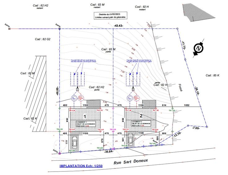 Permis obtenu , libre de constructeur, pas de bail à ferme, Plan courbe par géomètre, plans architectes, rapport PEB, étude sol et fondation.