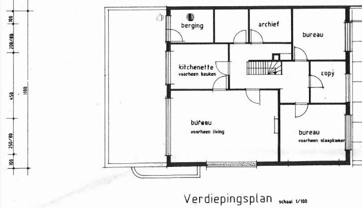 Er zijn meerdere afzonderlijke ruimtes die gebruikt worden voor verschillende doeleinden, waaronder afzonderlijke burelen, een vergaderruimte, een volledig ingerichte keuken, bergruimte en sanitaire voorzieningen.