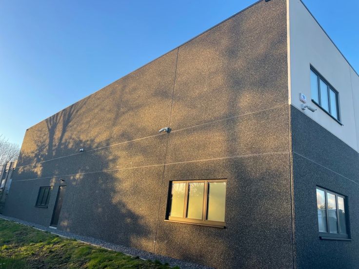 TE KOOP: instapklare afgewerkte nieuwbouw KMO unit van 294 m². Te koop onder 100% BTW stelsel! (geen registratie rechten te betalen). De hoek unit heeft verschillende ramen en een groenstrook naast het pand. Ideaal om een kantoortje in te bouwen. Huidige voorzieningen: Sanitair, alarm, gekeurde elektriciteit, geblindeerde veiligheids ramen, 2 privatieve parkeerplaatsen voor de unit...