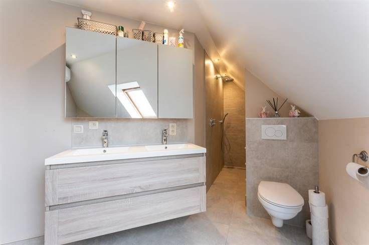 De woning is ingedeeld als volgt : op het gelijkvloers is er de inkomhal met het gastentoilet, de leefruimte van waaruit u dagelijks kan genieten van het uitzicht op de nieuw aangelegde tuin, de aangename zithoek,verder is er de nieuwe DOVY-keuken, tenslotte is er de garage, op de verdieping zijn er 3 volwaardige slaapkamers, een bergruimte/dressing en is er de nieuwe trendy badkamer met o.a. een ligbad en inloopdouche. Tenslotte is er de zolder met ruime opbergmogelijkheid.