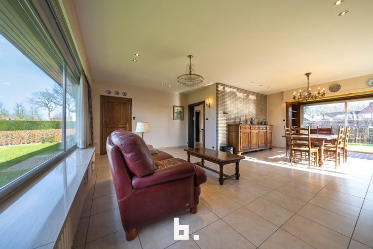 Deze villa is uitstekend gelegen in een rustige straat op een prachtig perceel van 1.000 m². Een mooie residentiële ligging in groene omgeving op wandelafstand van het centrum van Varsenare. De indeling is als volgt: BENEDENVERDIEPING: ruime inkomhal met gastentoilet, lichtrijke woonkamer omringd door tuin en voorzien van een gezellige gashaard, aparte ingerichte keuken (kookplaat, dampkap, oven, microgolfoven, koelkast, anderhalve spoelbak) met ontbijtmogelijkheid uitgevend op de tuin, aanpalende berging, apart toilet, 2 volwaardige slaapkamers, badkamer (ligbad, lavabo, bidet), dubbele inpandige garage, zeer grote kelder. BUITENOMGEVING: zeer ruime oprit, grote voortuin, groen omheinde achtertuin met zuidgeoriënteerd terras.