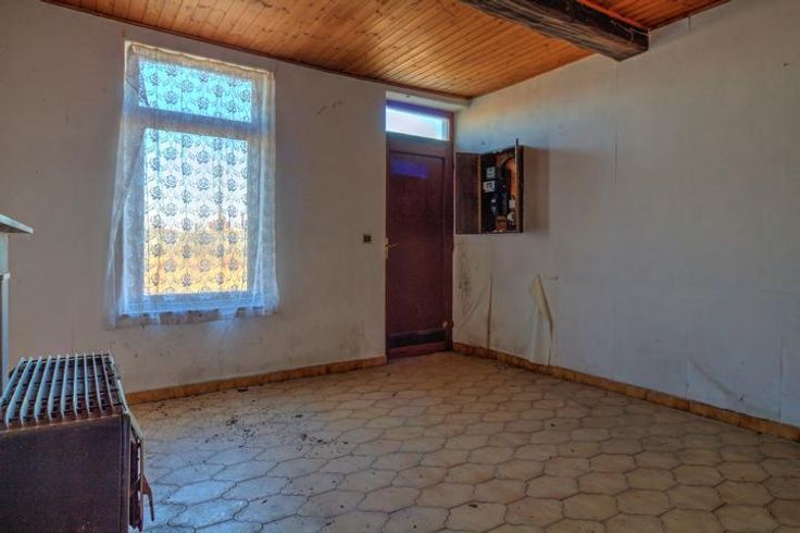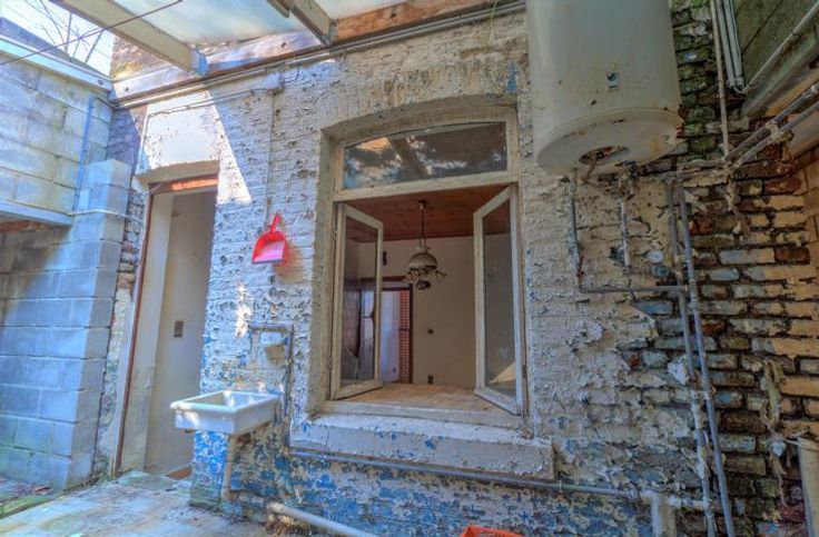 MAISON 2 CHAMBRES AVEC JARDIN ET GARAGE - A RENOVER - COMPOSITION - SOUS-SOL : une petite cave - RDCH : salon 14,6 m² (4mx3.7m), cuisine 14,4 m² (3,7mx3,6m), cour couverte, salle de douche avec douche, wc et bidet 6,4m² (1,6mx4m), wc 0,9 m², pièce de rangement 7,3m² (2,6mx2,8m)- 1er ETAGE : Cage d'escalier, une chambre de 17,4 m² (13,9mx4,5m) en enfilade avec une seconde chambre de 14,9m² (3,8mx4m). avec vue sur le jardin (possibilité de créer 2 chambres avec une entrée individuelle- EXTERIEUR : un garage de 18,4 m² (3,9mx6,4m) avec un corridor de 4m² menant à la cour couverte derrière la maison, un jardin d'environ 220 m², deux abris de jardin. DIVERS - Châssis bois DV excepté dans la cuisine, chaufage individuel au mazout, électricité non conforme. - RCNI : 287€ - PEB : G-20220123007792- Consommation théorique totale 55.131 kwh/an- Consommation spécifique 621 kwh/m²/an. POSSIBILITE D'ACHETER LA MAISON MITOYENNE AUSSI A RENOVER, RCNI : 285€ - PEB : G-20230405001654- Consommation théorique totale 68.503 kwh/an- Consommation spécifique 1.051 kwh/m²/an. LE PRIX POUR LES DEUX MAISONS S'ELEVE A 125.000 € (RCNI CUMULES : 572 €.. Informations données à titre indicatif, non contractuelles.