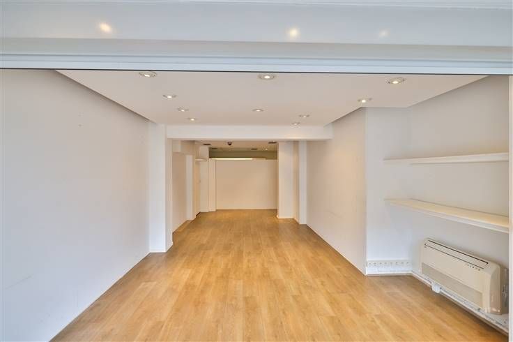 De handelsruimte is opgedeeld in 1 grote ruimte op laminaat, met vooraan een etalage van 3,5m breed, en achteraan 2 extra ruimtes die gebruikt kunnen worden als stockage of als aparte bureelruimte. Tevens is er een apart toilet met handenwasser voorzien, alsook een kitchenette met dubbele spoelbak.