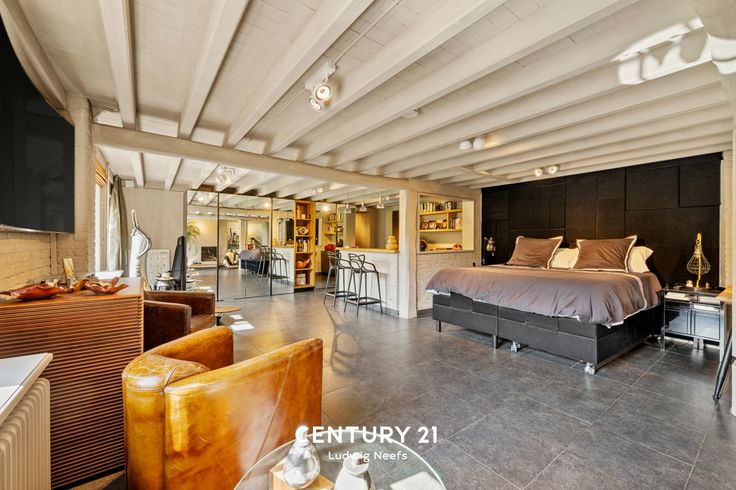 Bij het betreden van de villa word je verwelkomd door een ruime moderne studio op het gelijkvloers, compleet met een aparte ingang voor ultieme privacy. Deze veelzijdige ruimte kan dienen als een gastenverblijf, een kantoor aan huis of zelfs een atelier, waardoor het perfect is voor diverse behoeften.