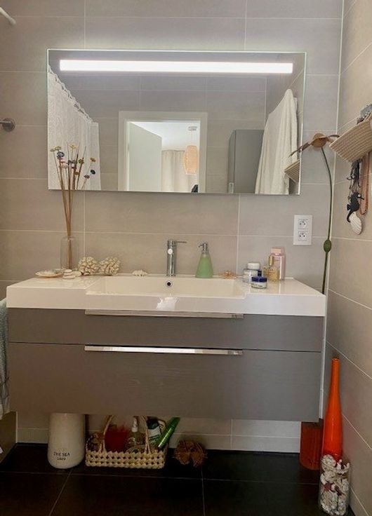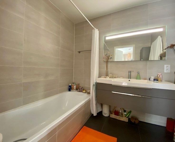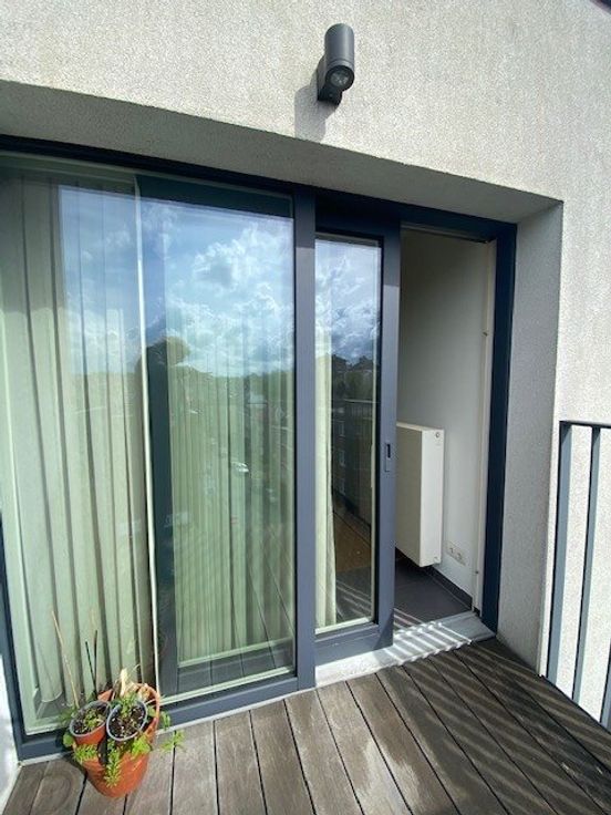 Nabij metro Roodebeek & Tomberg, Woluwe Shopping Center & cultureel centrum Wolubilis, licht modern appartement gelegen op de 5e verdieping van een passief gebouw - appt C503 - +/- 70 m2 - het bestaat als volgt: inkomhal, toilet, wastafel, vestiaire - lichte woonkamer + / - 24m2 met uitzicht op een houten terras + / - 4m2, op het zuiden/ West- mooie volledig uitgeruste Amerikaanse keuken (koelkast, vriezer, keramische kookplaat, elektrische oven, afzuigkap, vaatwasser - Siemens-uitrusting) - 1 grote slaapkamer +/- 14m2 (parket) met mooie ensuite badkamer (bad, wastafel, opslag) - waskasten in de keuken met uitrusting voor dubbele stroming - kelder en overdekte parkeerplaats 1 auto voorzien van een stekker langzame lading op privémeter - Diversen: dubbele centrale verwarming met programmeerbare thermostaat - gemeenschappelijke fietsenstalling - parkeerplaats - elektrische zonwering (in de slaapkamer en woonkamer) - gepantserde deur - driedubbele beglazing - video-intercom - PEB = B + (certificaat nr. 549147-N-3-18-2-2) - ideaal gelegen aan de voet van winkels, transport en gemakkelijke toegang tot de ring en de luchthaven - maandelijkse voorziening voor kosten: 120 € (gemeenschappelijk, verwarming, warm en koud water) - de gebieden worden alleen ter informatie gegeven en niet contractueel. gratis 1 juli - Meer informatie over WWW.HOUSINGANDHUMANS.COM