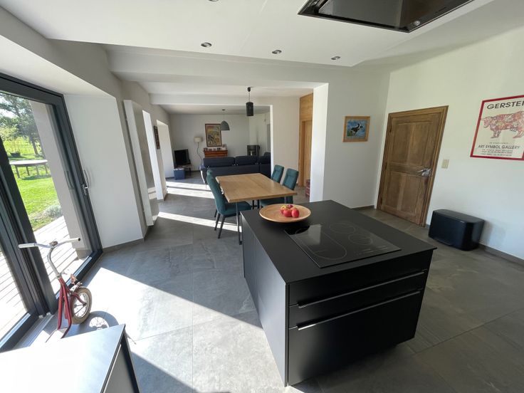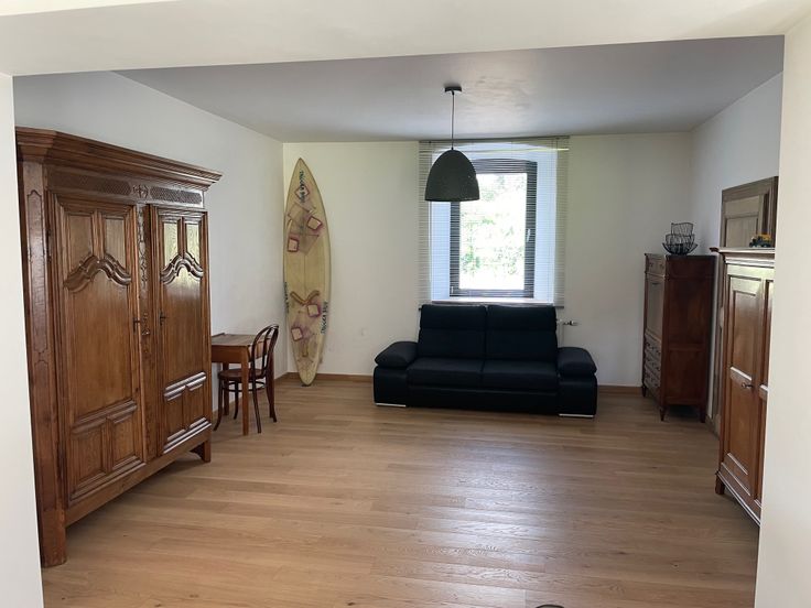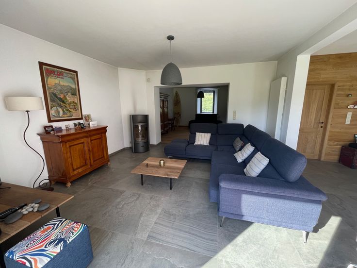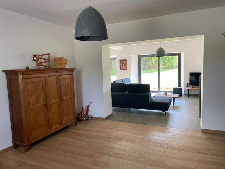 Hall d'entrée (12 m²), Cuisine équipée et salle à manger (34m²) ouvertes sur le salon TV avec poêle à bois Stuv 30 (20 m²), 2ème salon (23 m²) pouvant servir de salle de jeu, de bureau, de cabinet...