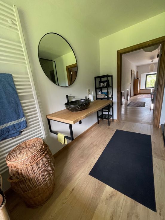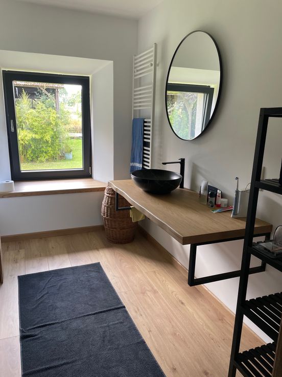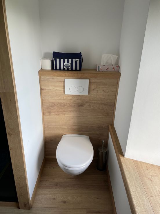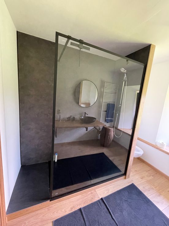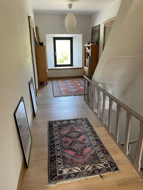 Très beaux matériaux: carrelage 80X80, planchers en chêne, portes en chêne massif, lambris en chêne et pin, ...