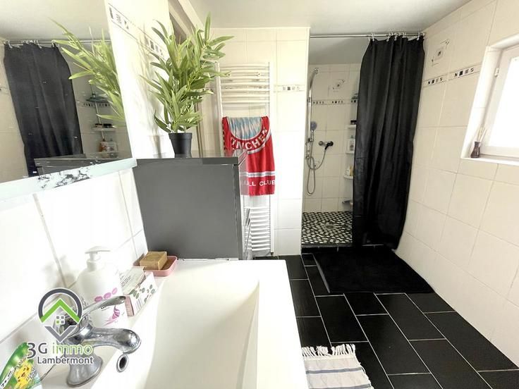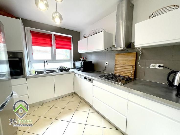 Coup de c½ur en Exclusivité, à Mont Saint Martin, avec 3G Immo Lambermont : maison individuelle, 3 ou 4 chambres dont 1 suite parentale au rez-de-chaussée. 0 travaux à prévoir, rénovée en 2016, d'une surface habitable d'environ 110m² + sous-sol complet (65m²) avec 2 garages. Le rez-de-chaussée se compose d'une magnifique pièce de vie de 45m² «en U», lumineuse et permettant d'avoir de l'espace pour le coin salon, pour la partie repas et pour la cuisine full équipée, ouvrant sur la terrasse arrière et le terrain. Se trouvent également une suite parentale de 21m² (chambre de 15m²) et sa salle d'eau avec douche italienne, wc et meuble vasque ; à noter que la chambre donne accès à une terrasse. Un wc séparé est également présent. L'étage, sur dalle, comprend 2 chambres (18m² et 9m²) ; la plus grande, facilement divisible en deux, donne accès à un bureau de 9m². Une salle d'eau (douche, meuble vasque et WC) complète le niveau. Au sous-sol, se trouvent une chaufferie avec espace de stockage, une buanderie, une cave et deux garages avec portes motorisées, l'un de 15m et l'autre de 22,7m². Maison de construction traditionnelle avec dalles à tous les niveaux, le rez-de-chaussée et le premier étage sont sur carrelage (sauf la chambre parentale), les deux salles d'eau sont carrelées. La toiture, les DV PVC avec volets électriques, l'électricité, la suite parentale et la cuisine full équipée datent de 2016. Chauffage central au gaz et poêle dans la partie salon qui chauffe toute la maison