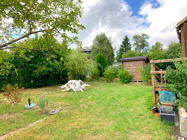 L’habitation de 60 m2 comporte une cuisine équipée ouverte, un espace salle à manger et salon avec un poêle à pellets, une salle de douche ainsi que deux chambres. Elle est implantée sur une parcelle de 6 ares orientée Sud avec terrasse, abri de jardin et parking.