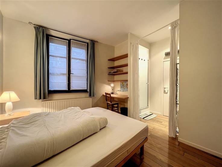 Bezoek dit appartement op 0474/32.54.05 // Stéphanie Quarter, charmant gemeubileerd 1-slaapkamer appartement ±40 m² gelegen in een binnenplaats, in een rustige hoek op 150 m van het Stéphanieplein. Het bestaat uit een ±23 m² woonkamer met een uitgeruste open keuken (oven, kookplaat, afzuigkap, koelkast, keukenaccessoires), een ±10 m² slaapkamer met een bureaugedeelte en kasten, een doucheruimte met een apart toilet. Het appartement heeft een kelder. Gemeenschappelijke kosten (voorschot): 10€/maand (onderhoud van gemeenschappelijke ruimtes). Parketvloer, dubbele beglazing, videofoon. Positieve punten: uitstekende locatie, rustige binnenplaats, tramhalte "Stéphanie" op 150m, metrostation "Louise" op 500m, Place Poelaert op 700m. Onmiddellijkbeschikbaar! Maten worden ter informatie gegeven.