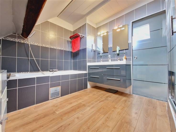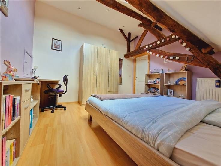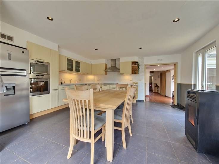 Ruim huis ideaal voor 2 gezinnen, van 270m² in totaal bewoonbaar, met tuin en 2 terrassen en een ontspanningsruimte onder de blauweregen, alles op 1200m², gelegen in een groene omgeving in het dorp, op 2 stappen van de gemeentelijke school en 10 minuten. van Frasnes, Ellezelles en Ath. Eerste huis bestaat uit een suite: eigen inkomhal, woonkamer, speelkamer / kantoor, grote keuken met eetkamer met prachtig uitzicht op de tuin, bijkeuken, wasplaats, toilet. Boven: overloop omgebouwd tot woonkamer, 4 slaapkamers, dressing, badkamer (bad, douche, wc) en een master suite (slaapkamer, kantoor, doucheruimte met wc) - 2de huis : eigen inkomhal, woonkamer, keuken, slaapkamer, doucheruimte, toilet - Kelder, groote parkeerplaats, carport - Nieuw dak, fotovoltaïsche panelen, conforme elektriciteit, c.v. mazout + pelletkachels. Een ideaal huis voor grote gezinnen, niet te missen! Prijs onder voorbehoud van aanvaarding door de eigenaren.