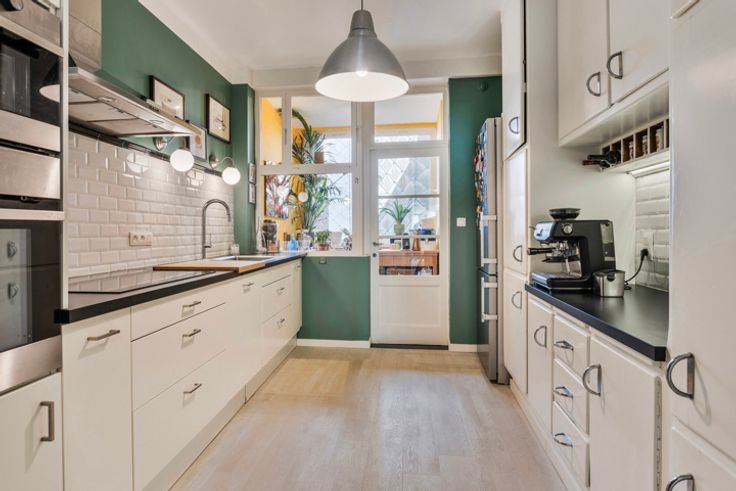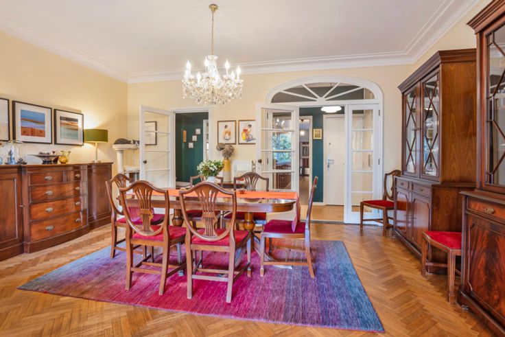 We vinden dit schitterend appartement terug op de vijfde verdieping in een prachtig appartementsgebouw in typische New York stijl op de gegeerde Mechelsesteenweg. Het geniet een uitstekende ligging in het hart van de stad waar we dankzij de bomen vooraan en het populaire Stadspark en Harmoniepark ons bevinden in een groene oase. Het is te betreden via de inkomhal waar een stijlvolle glazen Art Deco deur ons verder leidt naar de zonnige woon- en eetkamer. Hier vinden we nogmaals verschillende elementen in deze stijl terug waaronder de boog tussen de ruimtes, hoge plafonds en visgraat parket. Dit alles samen met de grote raampartijen creëert een uitzonderlijk licht en ruimtelijk gevoel. Aansluitend vinden we de ingerichte keuken welke gedeeltelijks werd gerenoveerd doch met het behoud van de originele Cubex keuken met praktische, aangrenzende bijkeuken. Verder zijn er 3 ruime slaapkamers waarvan 1 met een ensuite badkamer welke bestaat uit een originele, prachtige dubbele lavabo, ligbad en toilet. Ook een tweede badkamer ontbreekt hier niet en werd ingericht met een lavabo en inloopdouche. Tot slot is er nog een ‘meidenkamer’ of vierde slaapkamer welke beschikt over de nodige aansluitingen voor de was- en droogmachine. Technische gegevens: Elektriciteit is conform (volledig vernieuwd), sanitair volledig vernieuwd en de collectieve verwarmingsinstallatie (cv gas) is eveneens reeds vernieuwd (conform). Dak en lift reeds conform. Fietsenstalling en kelderberging. Voornamelijk dub