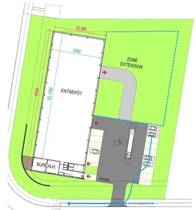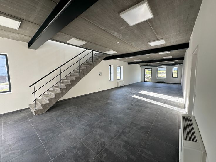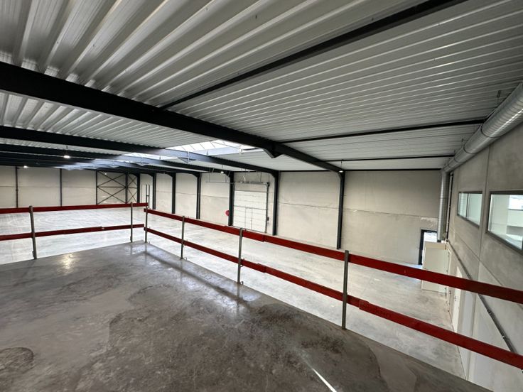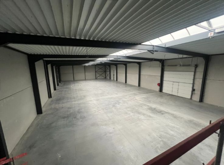 Nieuw semi-industrieel gebouw bestaande uit een magazijn van +/- 1050 m² met 1 elektrische sectionale poort van 4m80/4m50 en mogelijkheid voor een tweede, gladgestreken beton, mezzanine van 36m², hoogte van +/- 6,5 m, LED-verlichting + 228m² kantoren op 2 niveaus. Driefasig 3x400 V (HV cabine) Kantoren (2 niveaus): Tegels/vloerbedekking - LED verlichting - HVAC systeem - 220V en RJ 45 stopcontacten - Toiletten - Parlofonie - Manoeuvreerruimte voor het magazijn + 16 parkeerplaatsen. Mogelijkheid tot uitbreiding van 900 m². Gebouw gelegen in de nieuwe zone Saintes, op 5 min van Halle, vlakbij de snelwegen E429 en E19, op 15 min van Brussel en 25 min van Charleroi.