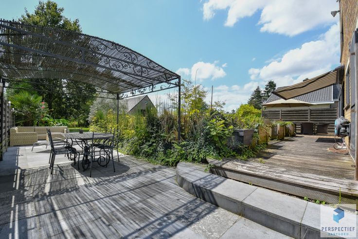 De glooiingen van de tuin in combinatie met de positie van de woning zorgen voor een unieke zelfs landelijke sfeer. De woning heeft de volgende indeling: Ruime inkom met toilet, leefruimte met open haard, met een bijkomende eetruimte die uitkijkt op de tuin. De ervaring in deze ruimtes wordt enorm versterkt door het omliggende groen die te bewonderen zijn vanuit de vele raampartijen. Grote open mooie Keuken met aansluitend de berging en grote garage. De verdieping bestaat uit het slaapgedeelte met vier slaapkamers die telkens mooie zichten geven over de tuin en een badkamer.
