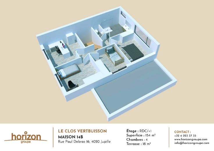 Ne manquez pas cette opportunité de vivre dans le confort et l'harmonie de cette maison contemporaine au cœur de l'éco-quartier Le Clos Vertbuisson. Contactez-nous dès maintenant pour au 04/223 37 35 ou via info@horizongroupe.com