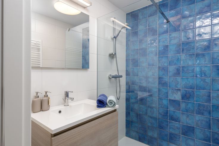 De twee comfortabele slaapkamers met elk hun badkamer zijn ideaal voor grotere gezinnen of logees. De grote badkamer is voorzien van douche en ligbad alsook een ingemaakte linnenkast.
