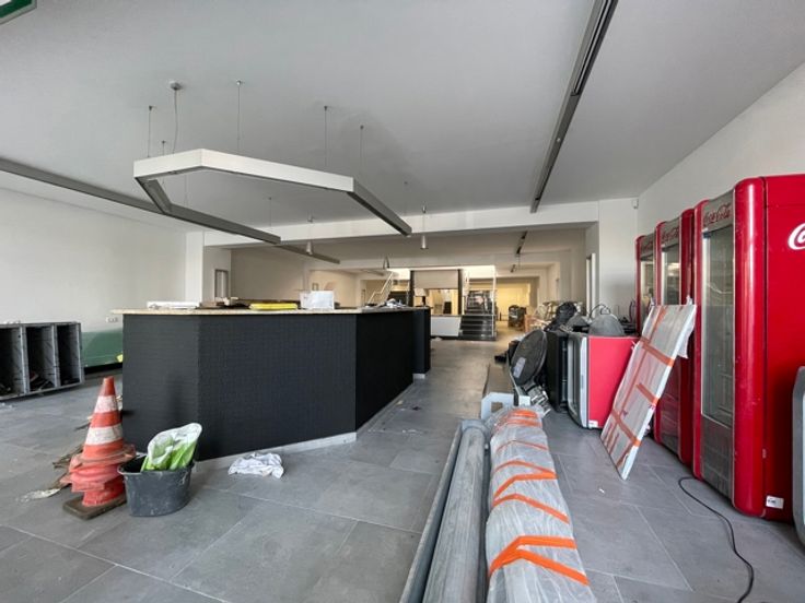 Facilité d'accès à l'arrière du bâtiment pour les fournisseurs, située dans un environnement commercial de centre-ville, près de la place communale et bénéficiant d'une très bonne visibilité Ideal pour salle de fêtes, restaurant, traiteur, brasserie, salle de sport,...