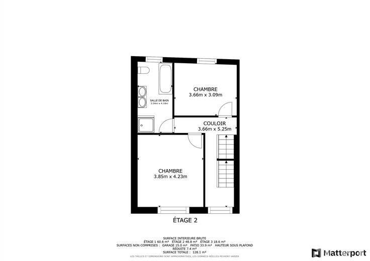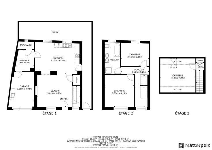 À l'étage, trois chambres spacieuses et une salle de bain complète avec douche et baignoire invitent au repos.