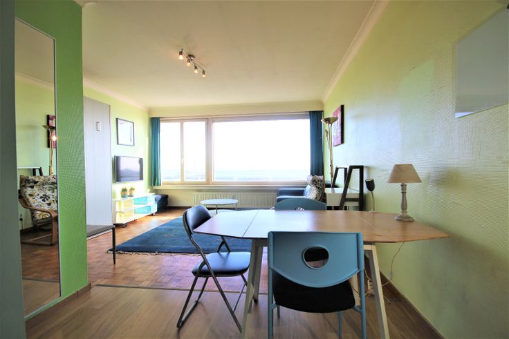 Schitterend gelegen in het hartje van Oud Oostende, en uitgevend op de Albert I – Promenade. Vanuit de living heeft men een prachtig panorama op de brede Promenade & Zeeliedenmonument, jachthaven, ‘t klein strand & strekdammen. De gemeubelde studio op de 2de verdieping van de residentie SILVERSANT heeft een oppervlakte van 40 m², en omvat: hall + vestiairekast & parlofoon, toilet,- badkamer met douche, toiletmeubel + lavabo & spiegelkast, hangkasten, schoenrek, en ventilator,- lichtrijke living (22 m²) met salon + lederen sofabed, bedkast, en salontafel * eethoek met tafel + 4 stoelen,- keuken (2,39 x 1,60) + ingebouwde dubbele inox afwasbak, elektrische kookplaat, dampkap, koelkast, en microgolfoven,- en kelderberging nr. 24. Ceramieken tegelvloeren in de keuken, badkamer, en w.c.. Voleiken parket in de living. Laminaatparket in de hall en eethoek. Collectieve centrale verwarming + warmwaterdistributie d.m.v. nieuwe H.R.-aardgasgenerator en boiler. Gerenoveerd & geïsoleerd dak. Lift conform de normen.