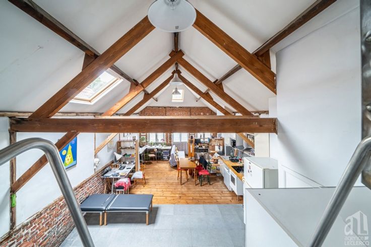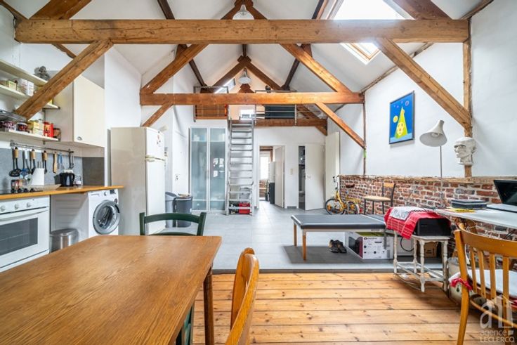 Au 2éme étage : duplex loué 600 € / mois hors charges et doté d'un grand séjour avec cuisine ouverte, une salle de douche, une chambre avec placards et une belle mezzanine.