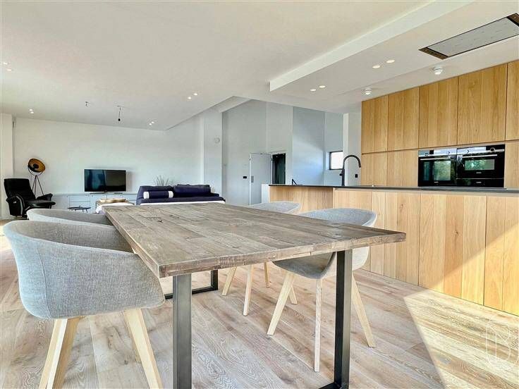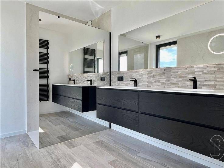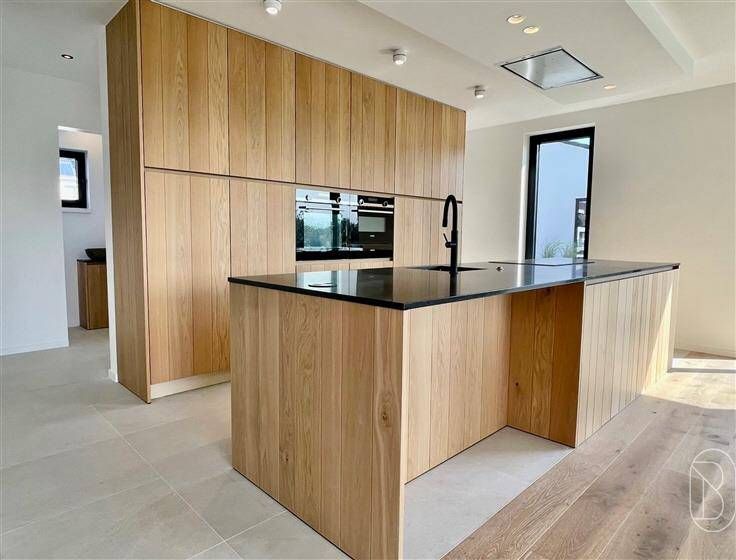 KWALITATIEVE ENERGIEZUINIGE MODERNE NIEUWBOUWVILLA op een TOPLOCATIE, genietend van een PRACHTIG ZICHT op de LEIE en op NATUURGEBIED. 6% BTW MOG. Indeling: inkomhal met trap en lift, garage (sectionale poort), bureau/slaapkamer met eigen badkamer, apart toilet, nachthal met inbouwkasten, 2 slaapkamers waarvan 1 met dressing en 1 met inbouwkasten, luxueuze badkamer met ligbad en ruime inloopdouche, berging/wasruimte. Op de 1ste verdieping bevinden zich de ruime lichtrijke leefruimte met open geïnstalleerde keuken met eiland, aangenaam zonnig terras van 40m2 met WAUW-UITZICHT op de leie, bijkeuken/wasplaats, toilet en zolder. TROEVEN: ENERGIEZUINIG (ZONNEPANELEN, WARMTEPOMP, REGENWATERPUT), unieke locatie, kwalitatieve materialen! Afspraak: IMMO BEGUIN: info@immobeguin.be