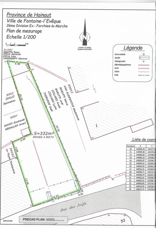 Terrain en zone d'habitat, surf +/- 5 ares 40 ca, façade +/- 14,50 m.